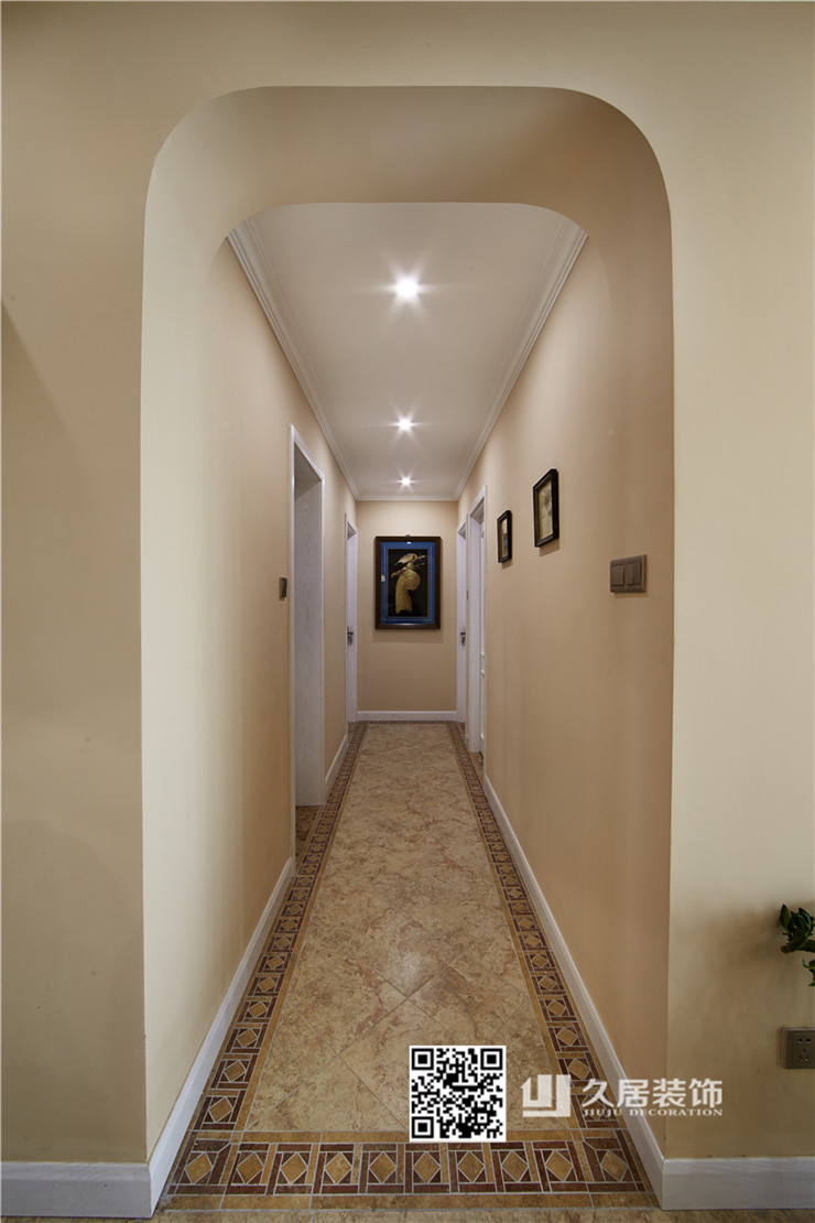 過道-拱形門-新湖果嶺89㎡三居室美式裝修風(fēng)格案例