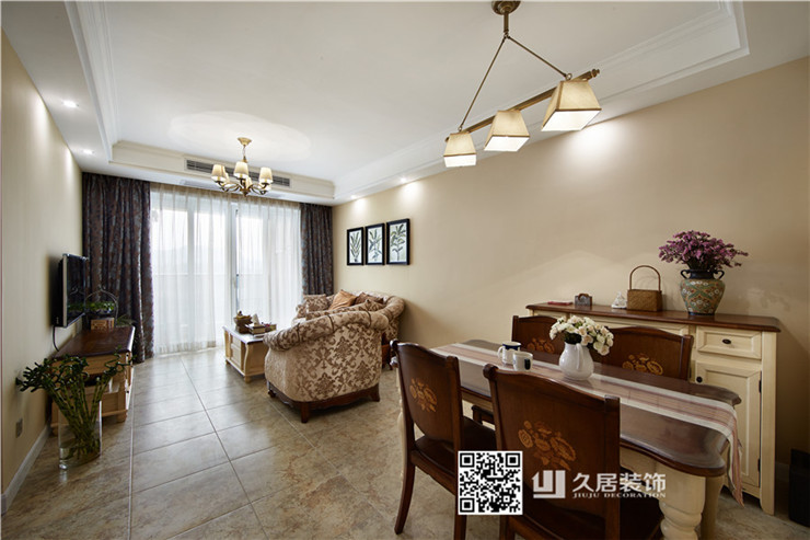 客餐廳-新湖果嶺89㎡三居室美式裝修風(fēng)格案例