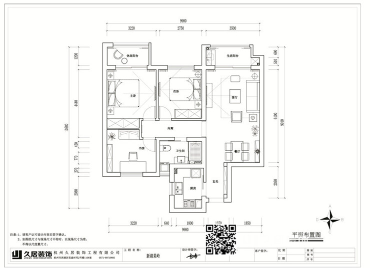 平面設(shè)計(jì)圖-新湖果嶺89㎡三居室美式裝修風(fēng)格案例