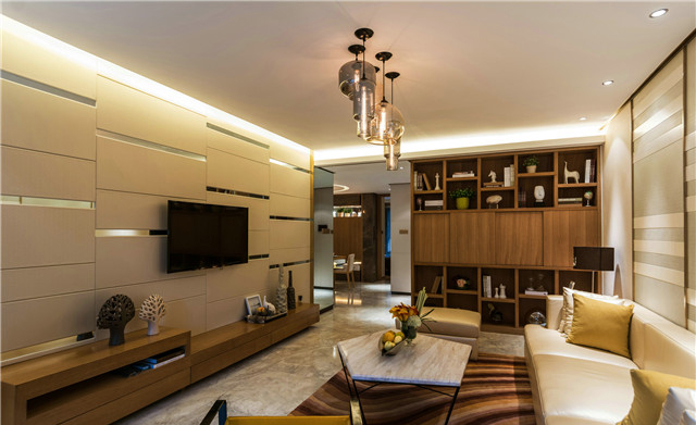 客廳-沙發(fā)背景-客廳書柜-漢嘉申花郡港式裝修風格