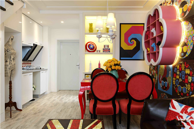 餐廳-紅色餐椅-撞色-住進(jìn)創(chuàng)意的城堡都市花園