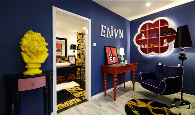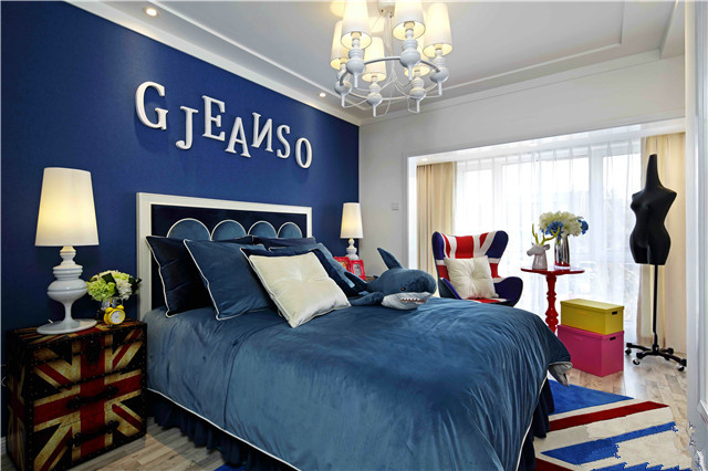 藍(lán)色臥室-米元素地毯-住進(jìn)創(chuàng)意的城堡都市花園