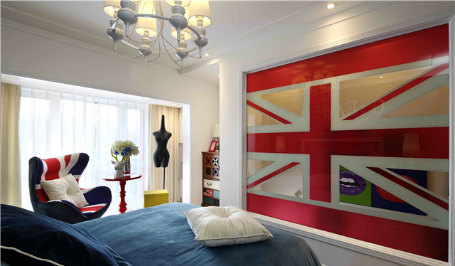 提取出獨(dú)特的裝飾元素,符號被不斷重復(fù),各種顏色、大小的米字旗出現(xiàn)在墻壁上、家具上,以及各類裝飾品上,成為空間的主題元素之一。...