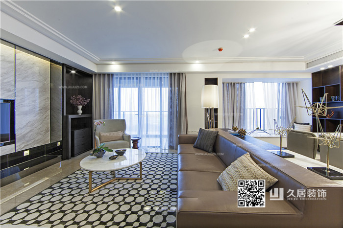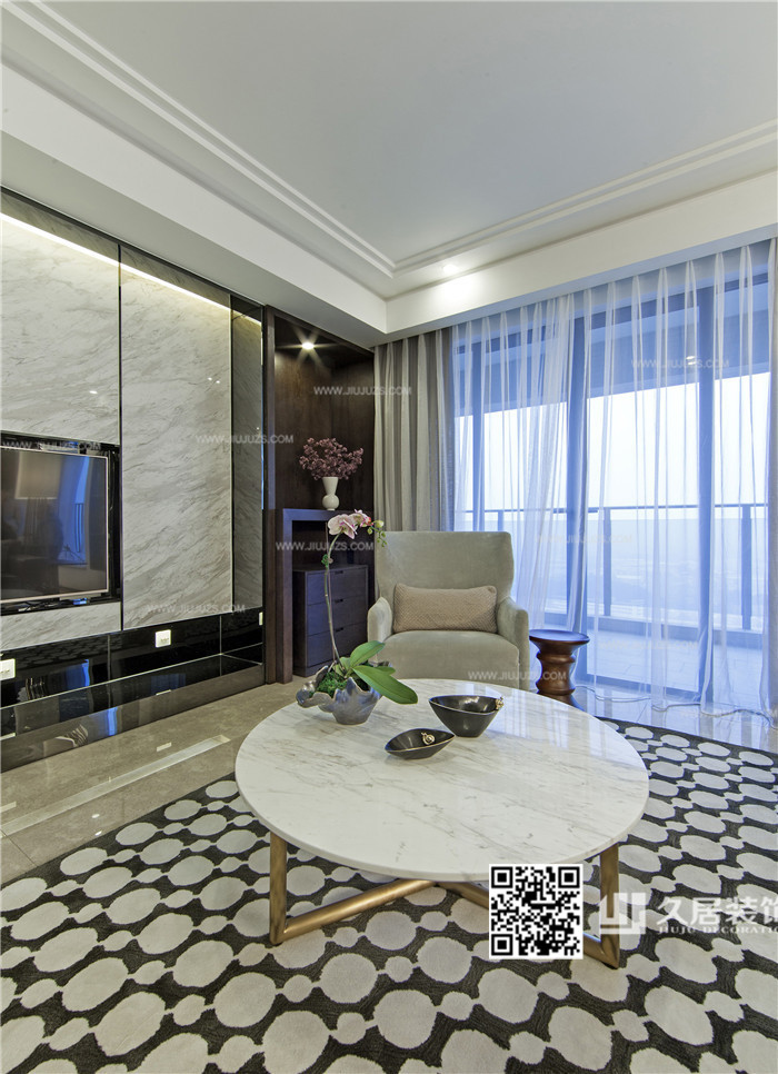 客廳-圓形茶幾-擔(dān)任沙發(fā)-地毯-110平米新穎的現(xiàn)代風(fēng)格住宅