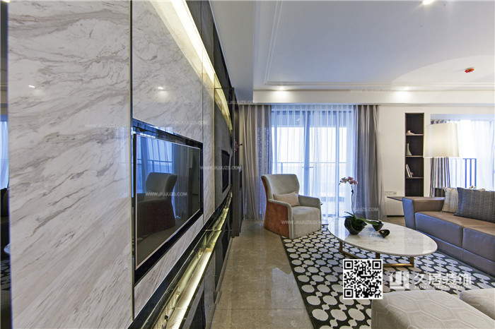 客廳-大理石電視背景墻-110平米新穎的現(xiàn)代風(fēng)格住宅